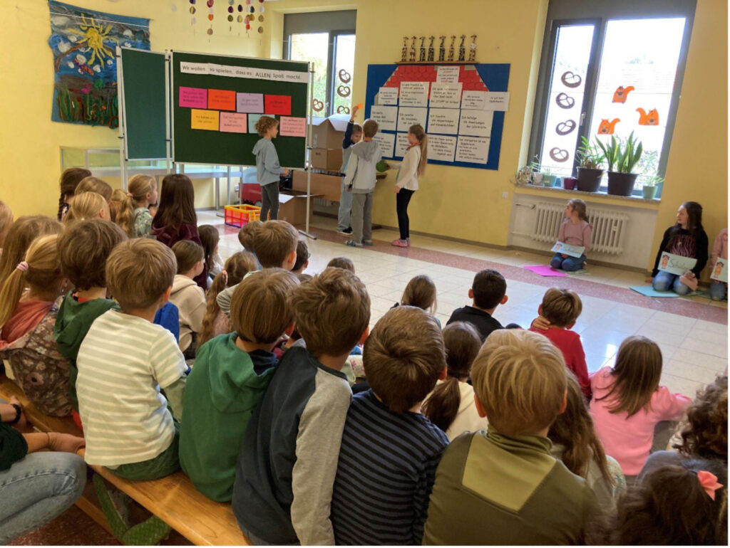 Deshalb bereiteten die Klassen 2a und 4a eine Wiederholung der wichtigsten Regeln der Grundschule Gernlinden vor.